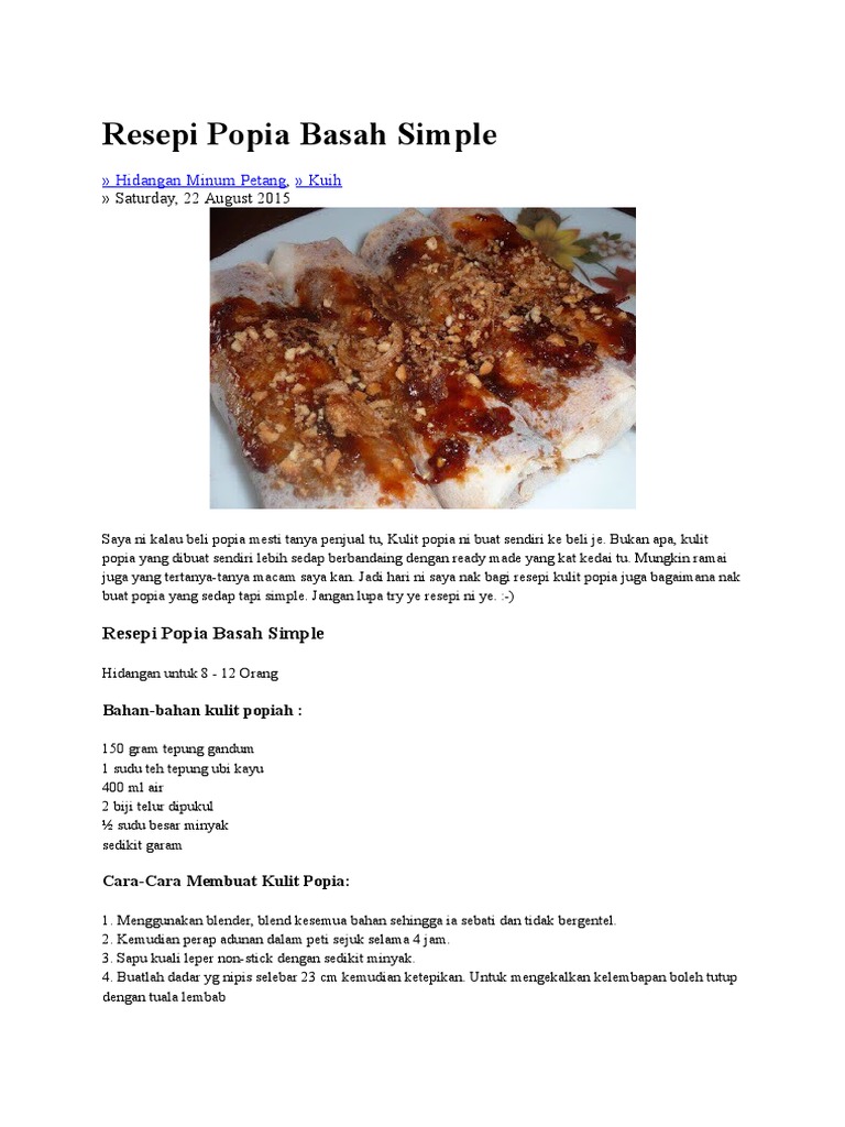 Resepi Popia Basah Simple Koleksi Resepi Emak Makanan Resep Masakan Malaysia Resep Makanan